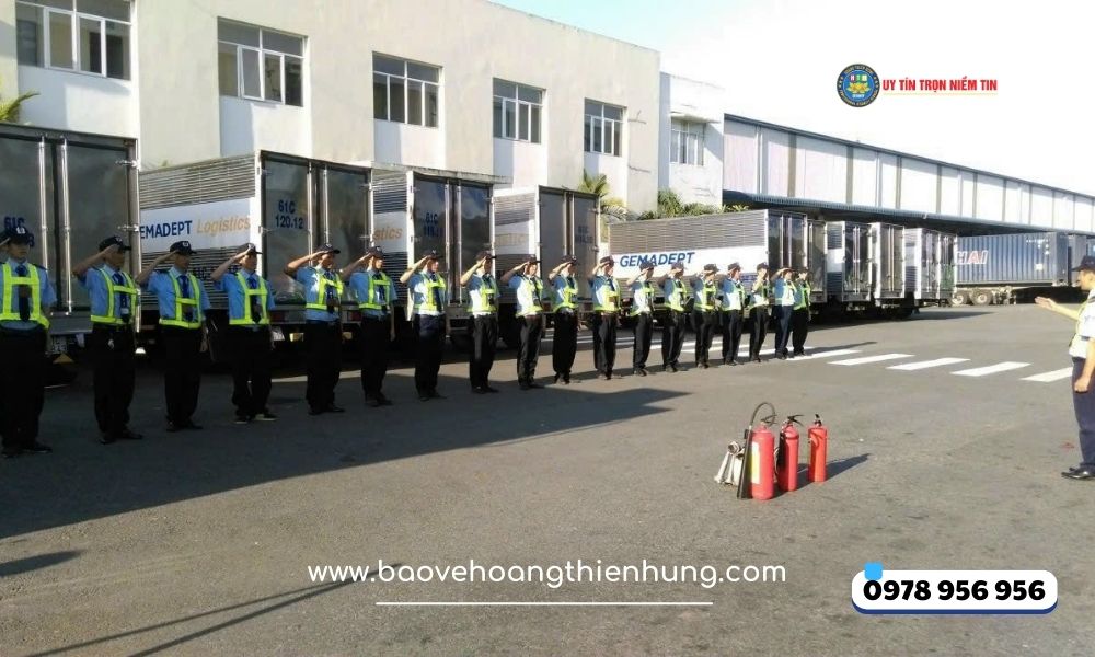 Nhân viên bảo vệ của Hoàng Thiên Hưng được tuyển chọn kỹ lưỡng, đào tạo bài bản về nghiệp vụ bảo vệ khu công nghiệp, kỹ năng kiểm soát cổng, tuần tra, xử lý tình huống và phòng cháy chữa cháy.