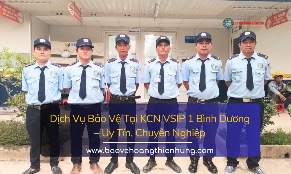 Bảo vệ Hoàng Thiên Hưng là đơn vị cung cấp dịch vụ bảo vệ tại KCN VSIP 1 Bình Dương toàn diện, phù hợp với tiêu chuẩn vận hành khắt khe của KCN VSIP 1.