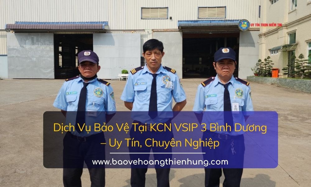 Doanh nghiệp đang tìm dịch vụ bảo vệ tại KCN VSIP 3 uy tín – chuyên nghiệp – ổn định – lâu dài có thể lựa chọn Bảo vệ Hoàng Thiên Hưng như một giải pháp an ninh tổng thể, đồng hành bền vững trong suốt quá trình phát triển.